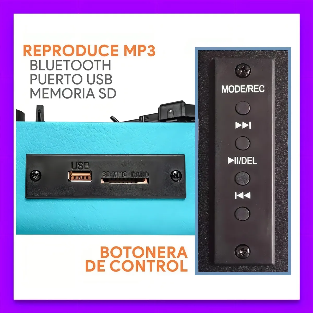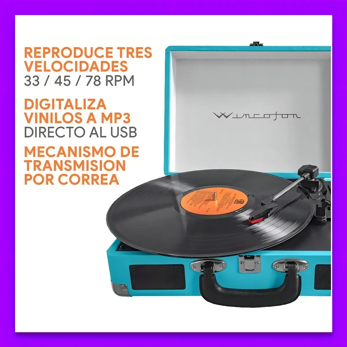 Disfruta de la música en su forma más pura con el Tocadiscos Winco W406 en color celeste, un dispositivo que combina lo mejor de lo clásico y lo moderno. Este tocadiscos te permite escuchar tus vinilos favoritos a 33, 45 y 78 rpm, ofreciéndote una experiencia de sonido auténtica y de alta calidad. Además, su mecanismo de transmisión por correa garantiza un funcionamiento suave y estable. Pero eso no es todo, el Winco W406 también cuenta con conectividad Bluetooth, lo que te permite transmitir música desde tus dispositivos móviles de forma inalámbrica. Y si prefieres una conexión por cable, puedes utilizar la entrada AUX o las salidas de audio RCA para conectar otros dispositivos de sonido. ¿Quieres guardar tus vinilos en formato digital? El tocadiscos Winco W406 te lo pone fácil con su función de grabación, que te permite convertir tus discos en archivos MP3 a través de su puerto USB o SD. Además, cuenta con una salida para auriculares, para que puedas disfrutar de tus discos en privado sin molestar a los demás. Y no te preocupes por la calidad del sonido, ya que este tocadiscos viene con parlantes incorporados que te ofrecen un audio nítido y potente. No esperes más para revivir esos momentos nostálgicos y disfrutar de la música como nunca antes con el Tocadiscos Winco W406 celeste con Bluetooth y altavoces incluidos.